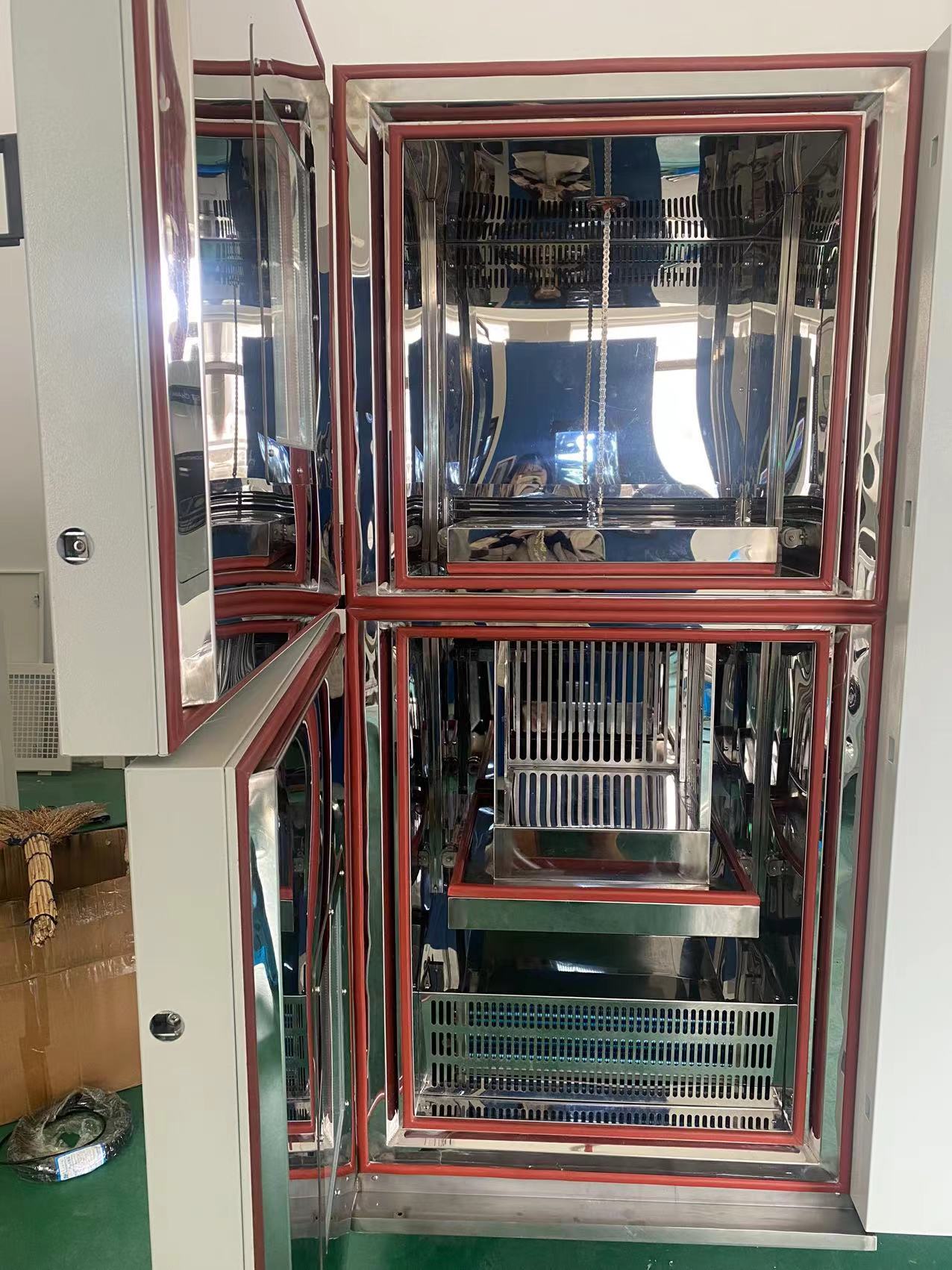 2.另外的一部分水,屬于測試區的設計問題,有些廠家生產的兩箱式冷熱沖擊試驗箱,排放熱能是通過在測試區對外開啟閥門抽風,以降低試驗室內的熱量,這樣做高、低溫沖擊時,測試區內的高溫能量或者低溫能量都被排放到室外,這樣雖然達到了降低蓄能組件成本的目的,但是試驗室內會引入大量水分,也必然造成預冷區結霜。