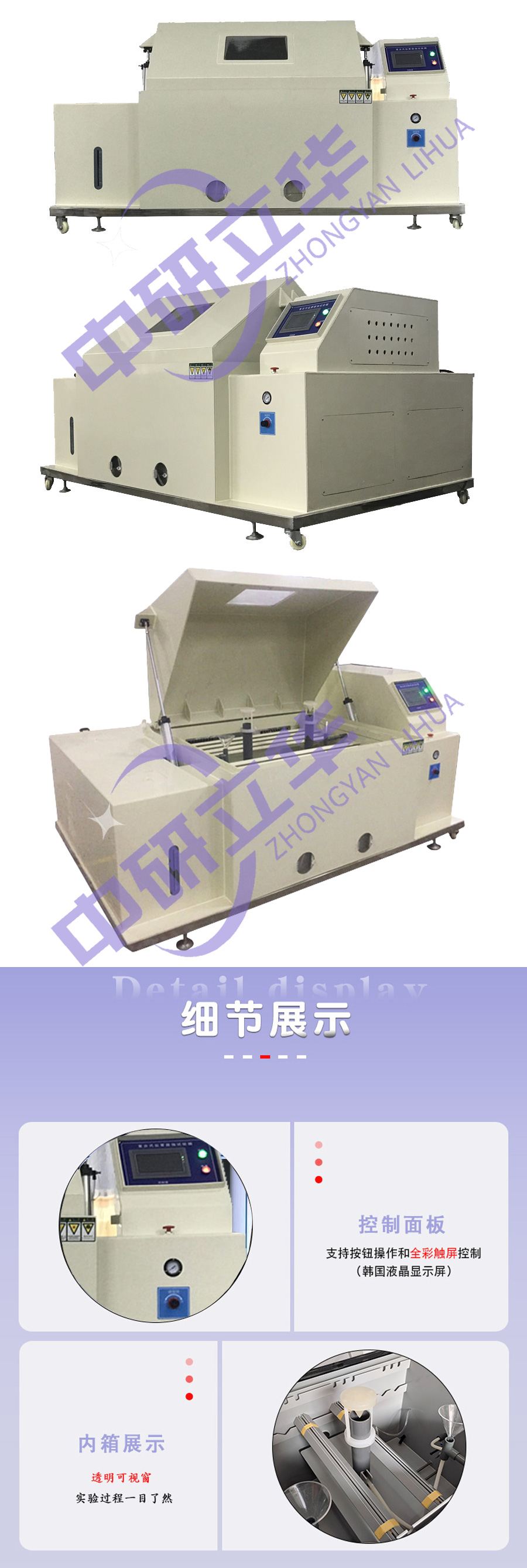 | 產品用途 | 溫濕度鹽霧復合試驗機是為加速腐蝕試驗中 接近實際的自然狀況,以自然環境中較常遇見之狀況加以模擬,以數倍於自然 環境之嚴苛條件加以組合測試,如鹽霧、干燥、濕潤、常溫、低溫等環境加以組合,可任意順序或單獨進行測試。主要測試品針對在激烈環境變化下使用的產品, 如汽機車零配件,航空器材、攝影器材、建筑材料、電著涂膜涂料及電子電機系統等金屬電化學腐蝕抗抵性皆適用 | |||